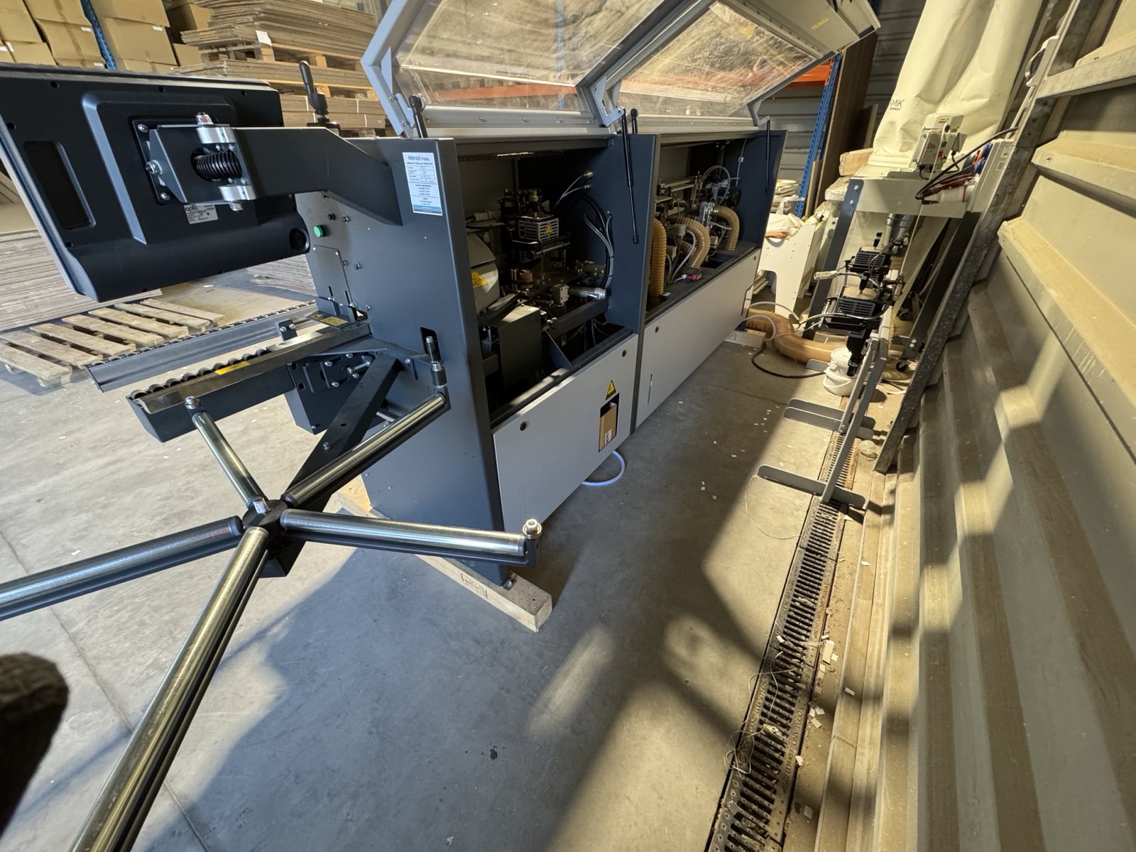 Okleiniarka z wstępnym frezowaniem z systemem nakładania kleju na krawędź elementu i okleinowania obrzeżem o grubości do 3 mm. Solidna, nie zajmująca wiele miejsca i łatwa w obsłudze maszyn. Okleiniarki Hebrock nadają się do: drewna litego, płyty wiórowej, płyty blokowej, MDF czy Mulitiplex - zawsze można polegać na precyzyjnym i czystym oklejaniu krawędzi