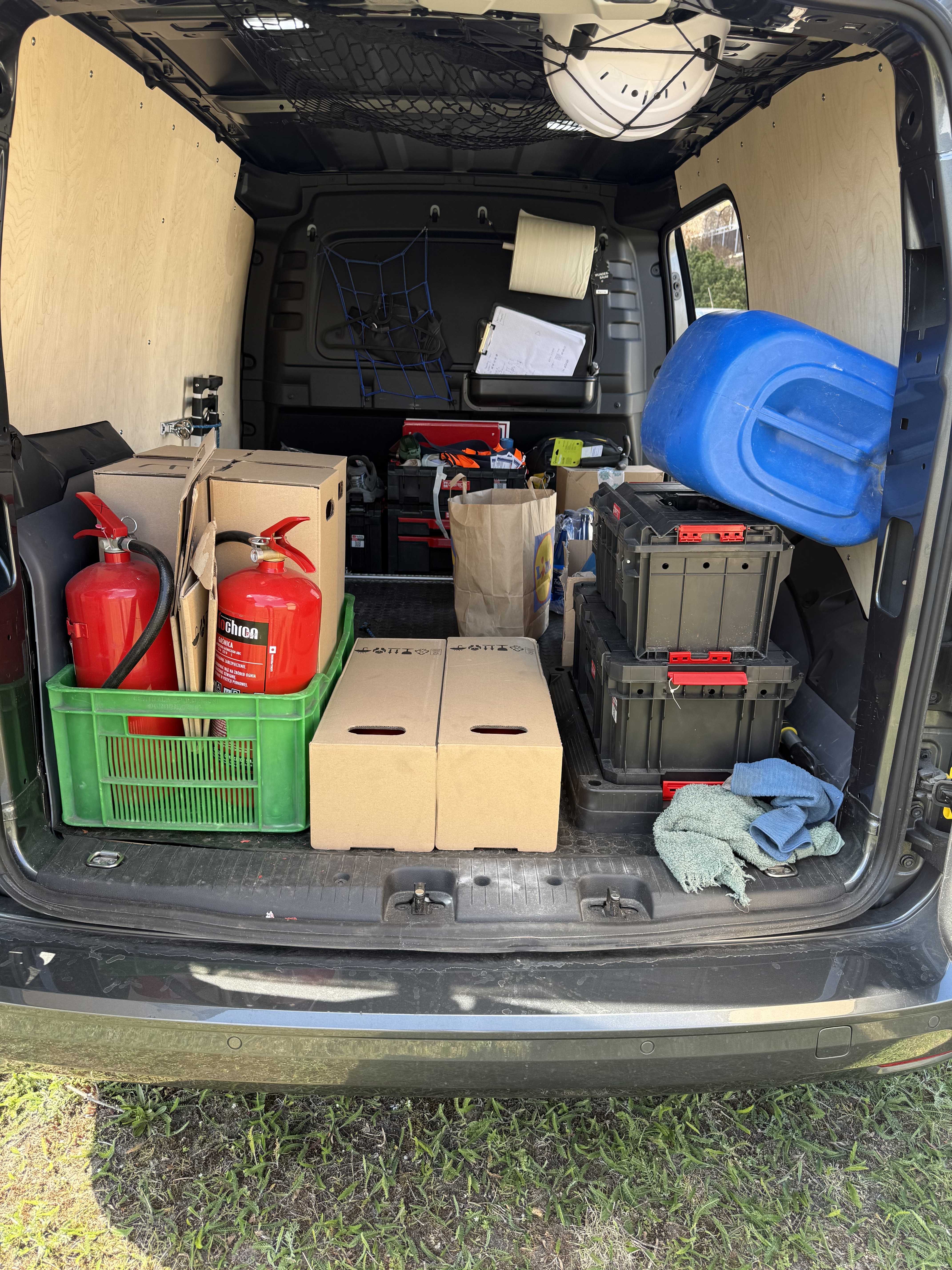 dodatkowo, wykonana zabudowa przestrzeni ładunkowej ze sklejki, do wysokości dachu, oraz wzmocniona podłoga antypoślizgowa + wykładzina gumowa